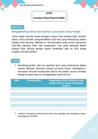 budaya Kota Serang. Aktivitas ini memfokuskan anda untuk memahami