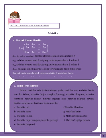 Dalam matriks ada jenis-jenisnya, yaitu matriks nol, matriks baris,