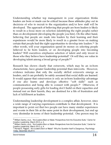 18 William Gentry, et.al., “Are Leaders Born or Made: Perspectives from the Executive Suite,” Center for