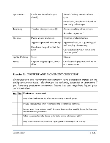 Exercise 21: POSTURE AND MOVEMENT CHECKLIST