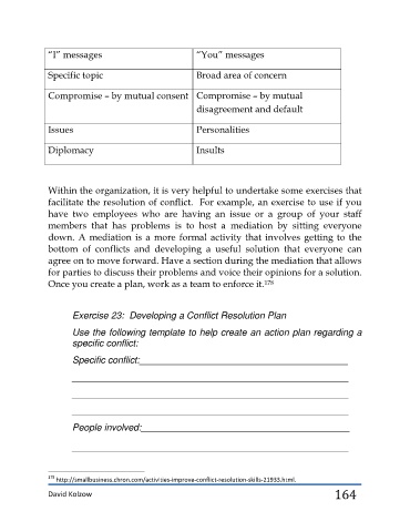 facilitate the resolution of conflict. For example, an exercise to use if you