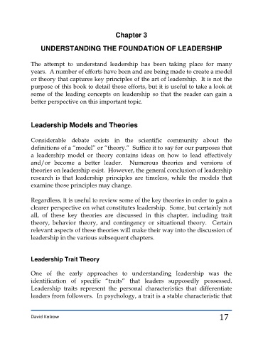 leadership in the various subsequent chapters.