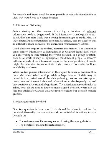 time spent on information gathering has to be weighed against how much