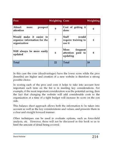 In scoring each of the pros and cons it helps to take into account how