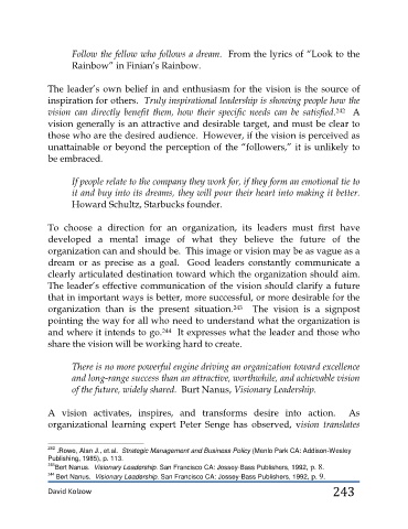 243 Bert Nanus. Visionary Leadership. San Francisco CA: Jossey-Bass Publishers, 1992, p. 8.