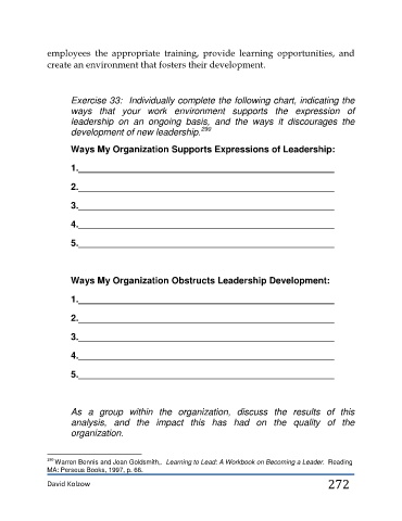 290 Warren Bennis and Joan Goldsmith,. Learning to Lead: A Workbook on Becoming a Leader. Reading