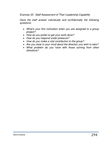 Exercise 35: Staff Assessment of Their Leadership Capability
