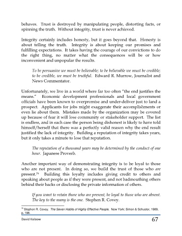 justified the lack of integrity. Building a reputation of integrity takes years,