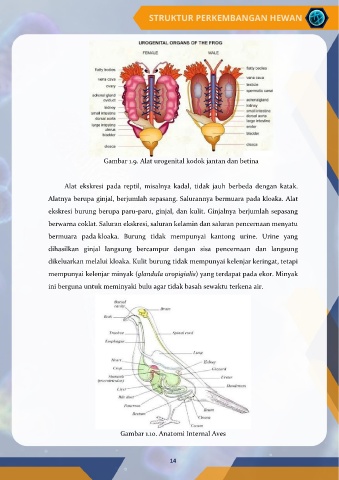 Gambar 1.9. Alat urogenital kodok jantan dan betina