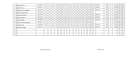 21 Mukti Abdi Putra 0011196425 78 78 80 78 80 80 78 80 83 78 78 70 80 78 81 80 B Marawis 1.260 16 78,75 29 0 0 0