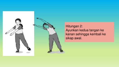 Hitungan 2: Ayunkan kedua tangan ke kanan sehingga kembali ke sikap awal.