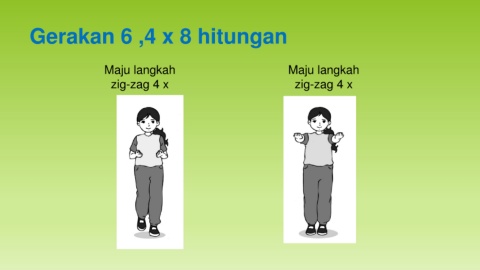 Gerakan 6 ,4 x 8 hitungan Maju langkah Maju langkah zig-zag 4 x zig-zag 4 x