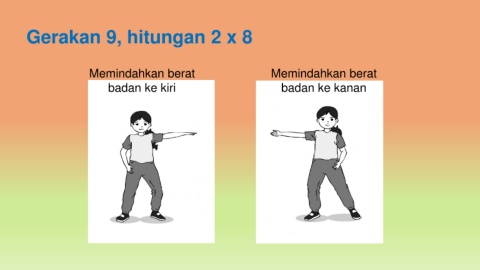 Gerakan 9, hitungan 2 x 8 Memindahkan berat Memindahkan berat badan ke kiri badan ke kanan