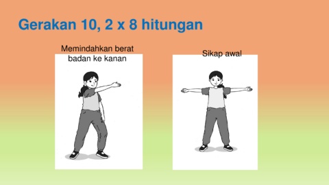 Gerakan 10, 2 x 8 hitungan Memindahkan berat badan ke kanan Sikap awal