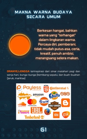 ORANYE/JINGGA terinspirasi dari sinar matahari pagi dan senja hari, bunga-bunga (kembang sepatu, dan buah-buahan (jeruk, markisa)