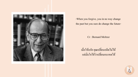 -When you forgive, you in no way change the past but you sure do change the future- Cr : Bernard Meltzer ุ ี่ ี ื่ เมอให้อภัย คณเปลยนอดตไม่ได้ แต่มั่นใจได้ว่าเปลยนอนาคตได้ ี ่