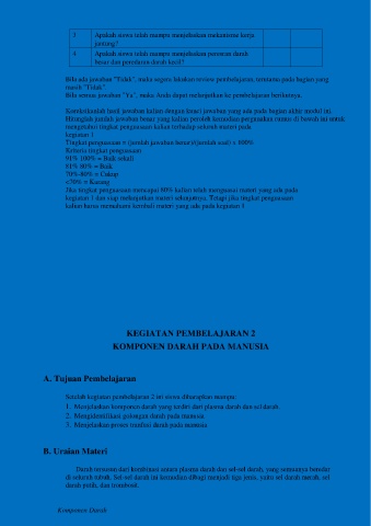 4 Apakah siswa telah mampu menjelaskan peresran darah