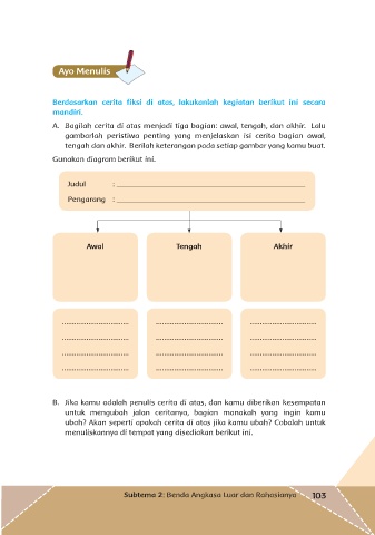 A. Bagilah cerita di atas menjadi tiga bagian: awal, tengah, dan akhir. Lalu