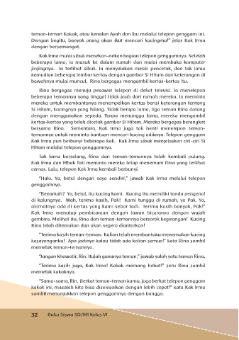 Si Hitam, kucingnya yang hilang. Tidak berapa lama, tiga teman Rina datang