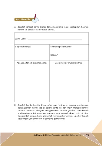 A. Bacalah kembali cerita di atas dengan saksama. Lalu lengkapilah diagram