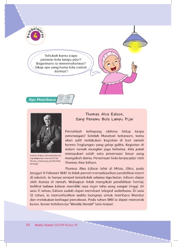 di sekolah. Ia hanya sempat bersekolah selama tiga bulan. Edison diajar