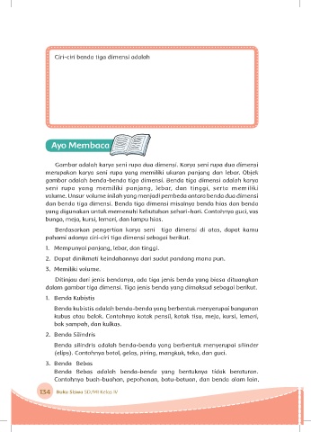 Ciri-ciri benda tiga dimensi adalah
