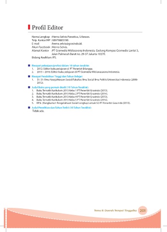 2. 2013 – 2016: Editor buku pelajaran di PT Gramedia Widiawasarana Indonesia.