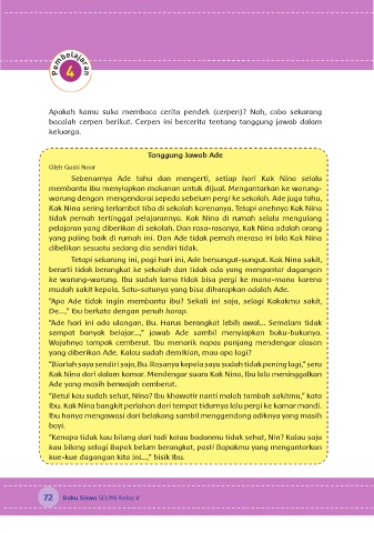 bacalah cerpen berikut. Cerpen ini bercerita tentang tanggung jawab dalam