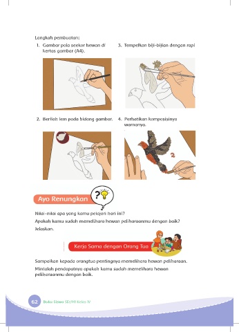 2. Berilah lem pada bidang gambar. 4. Perhatikan komposisinya