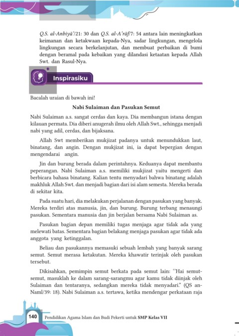 140 Pendidikan Agama Islam dan Budi Pekerti untuk SMP Kelas VII 141