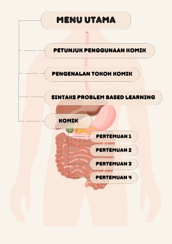 MENU UTAMA Petunjuk Penggunaan Komik Pengenalan tokoh komik Sintaks problem based learning Komik pertemuan 1 pertemuan 2 pertemuan 3 pertemuan 4
