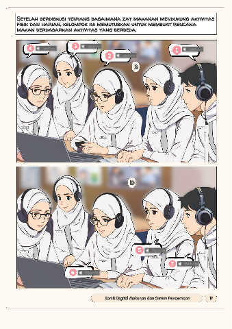 Setelah berdiskusi tentang bagaimana zat makanan mendukung aktivitas fisik dan harian, kelompok ini memutuskan untuk membuat rencana makan berdasarkan aktivitas yang berbeda. D D Komik Digital Makanan dan Sistem Pencernaan 19