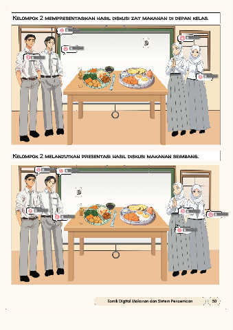 Kelompok 2 mempresentasikan hasil diskusi zat makanan di depan kelas. d Kelompok 2 melanjutkan presentasi hasil diskusi makanan seimbang. d Komik Digital Makanan dan Sistem Pencernaan 30