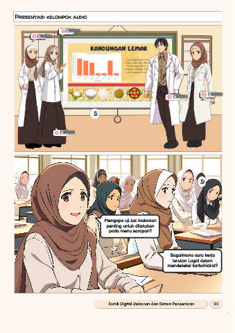 Presentasi kelompok audio D D Mengapa uji zat makanan penting untuk dilakukan pada menu sarapan? Bagaimana cara kerja larutan Lugol dalam mendeteksi karbohidrat? Komik Digital Makanan dan Sistem Pencernaan 22