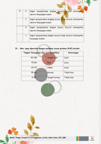 IV. Skor yang diperoleh dengan penilaian acuan patokan (PAP) berikut.