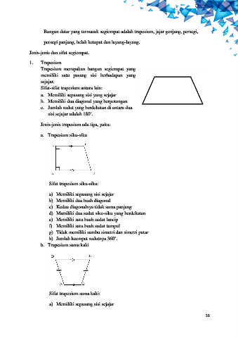 Sifat-sifat trapesium antara lain: