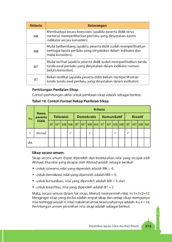 Tabel 10. Contoh Format Rekap Penilaian Sikap
