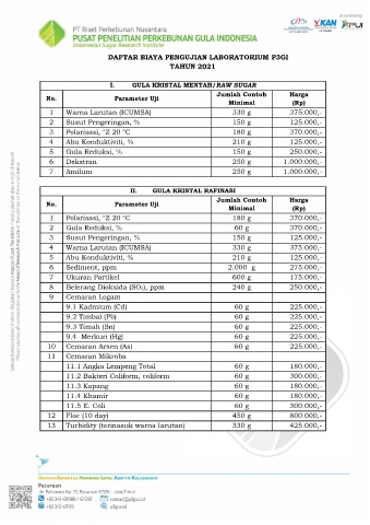 DAFTAR BIAYA PENGUJIAN LABORATORIUM P3GI