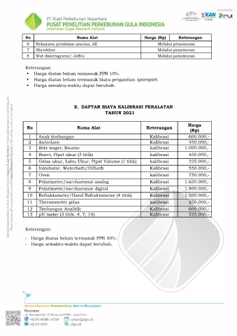 E. DAFTAR BIAYA KALIBRASI PERALATAN