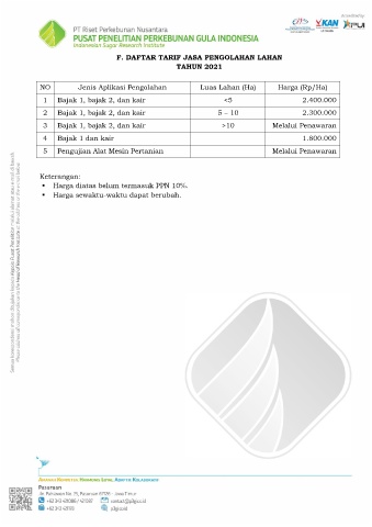 F. DAFTAR TARIF JASA PENGOLAHAN LAHAN