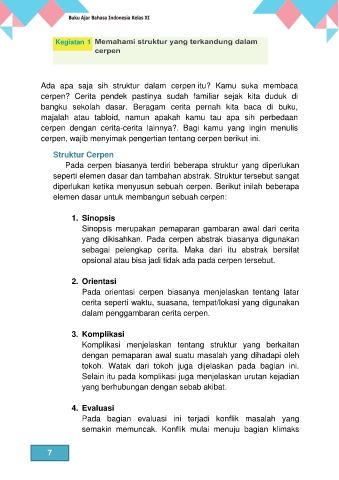 Pada cerpen biasanya terdiri beberapa struktur yang diperlukan