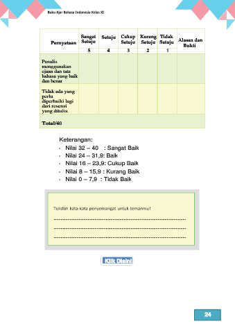 Sangat    Setuju    Cukup  Kurang  Tidak         Alasan dan