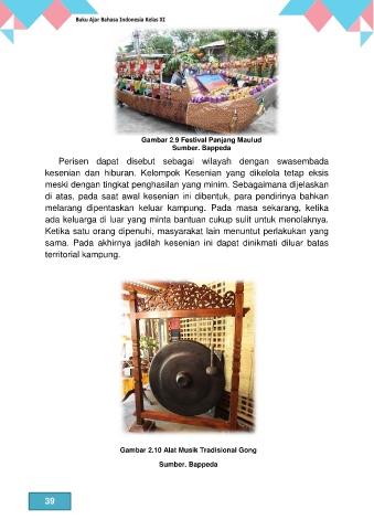 kesenian dan hiburan. Kelompok Kesenian yang dikelola tetap eksis