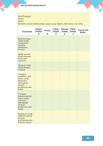 Menulis resensi berdasarkan cerpen yang ditulis oleh teman satu kelas.