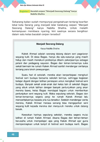 Seorang Dalang” karya Nabilla Shafira. Untuk melatih
