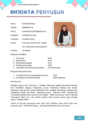 Kholifatul Husna lahir di Serang, 11 Oktober 1999 saya adalah mahasiswi Fakultas
