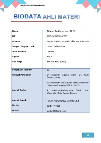 Jabatan : Kepala Kurikulum dan Guru Bahasa Indonesia