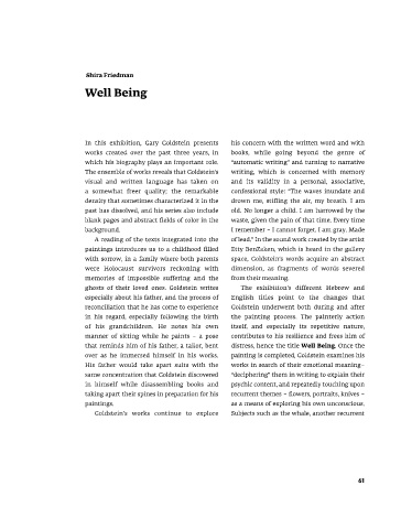 The ensemble of works reveals that Goldstein’s writing, which is concerned with memory