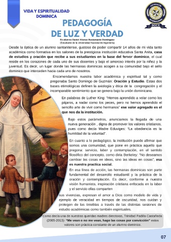 de estudios y oración que recibe a sus estudiantes en la base del fervor dominico, el cual