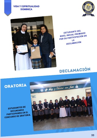 VIDA Y ESPIRITUALIDAD DOMINICA ESTUDIANTE DEL NIVEL INICIAL PREMIADO POR SU PARTICIPACIÓN EN LA DECLAMACIÓN Declamación Oratoria ESTUDIANTES DE SECUNDARIA PARTICIPANDO EN EL A CONCURSO DE ORATORIA. A 33